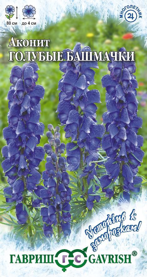 Многолетнее растение из семейства Лютиковые, высотой до 80 см, с темно-зелеными блестящими листьями. Цветки неправильной формы, напоминающие башмачки, диаметром до 4 см, сине-голубые, собраны в длинные густые кистевидные соцветия. Семена высевают под зиму или весной на участках с увлажненной почвой. При весеннем посеве необходима стратификация: около месяца при температуре 20-25?С и три месяца — при 2-4?С, после чего семена дружно прорастают при комнатной температуре. В стадии одного-двух листочков сеянцы пикируют на расстоянии 10 см, а осенью высаживают на постоянное место по схеме 25х30 см. Зацветают молодые растения через 2-3 года. Цветение с конца июня до августа. Аконит предпочитает расти на легких суглинистых почвах, в солнечных или полутенистых местах. Уход заключается в периодических поливах и рыхлении почвы. Растение зимостойкое, не требует укрытия на зиму. Прекрасно подходит для составления букетов и цветочных композиций.