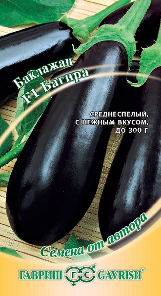 Среднеспелый (100-110 дней от всходов до плодоношения) высокорослый (до 1,2 м) гибрид, рекомендован для пленочных укрытий и теплиц. Плоды овальной формы, длиной 12-20 см, темно-фиолетовой окраски, с глянцевой поверхностью, массой 250-300 г. Мякоть средней плотности, белая с зеленым оттенком, без горечи. Сорт ценится за неприхотливость, нежный вкус плодов, удобных в приготовлении. Урожайность одного растения 2,5-3,0 кг. Посев семян на рассаду производят в конце февраля. Пикировку — в фазе семядолей. Высадку рассады – в конце мая. После высадки растения формируют (удаляют все боковые побеги и листья до первой развилки). Схема посадки: 40х60 см.