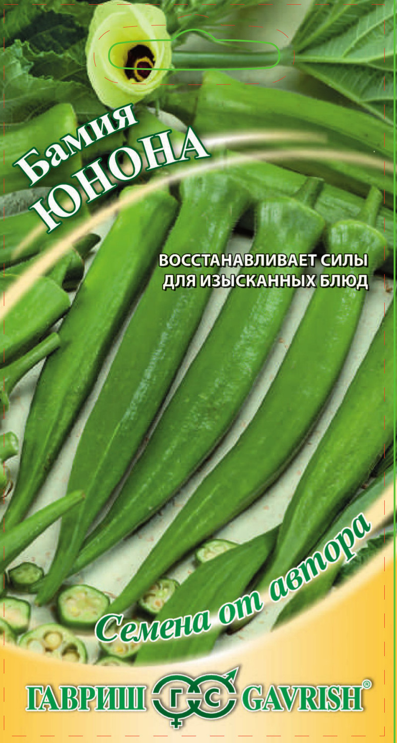 Позднеспелый. Период от полных всходов до начала хозяйственной годности 90-115 дней. Теплолюбивое однолетнее растение — травянистая лиана высотой 170-200 см. В пазухах листьев формируются плоды в виде 4-8-гранных стручков (их называют коробочками), в которых заключены семена. На одном растении 10-15 завязей. Плод бамии пальцевидной формы длиной от 6 до 30 см, содержит слизистые вещества и является диетическим блюдом для больных гастритом. В пищу употребляются только молодые (3-6 дневные) завязи зеленого цвета, не снятые вовремя плоды становятся несъедобными. Масса одной 3-6-дневной завязи 10-30 г. Плоды бамии едят как в свежем виде (их кладут в салаты), так и вареными, тушенными, жаренными. Кроме того, их сушат, замораживают, консервируют. Рекомендуется выращивать в открытом грунте или под временным пленочным укрытием. Способ посадки – рассадный, возраст рассады 35-45 дней. Расстояние между растениями в ряду 30-40 см, между рядами 60 см. Урожайность завязей 3,7 кг/м2.