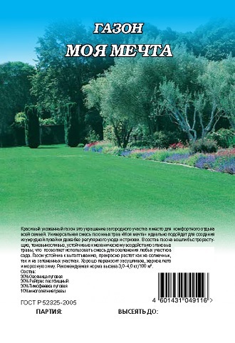 Красивый ухоженный газон — это украшение загородного участка и место для  комфортного отдыха всей семьей. Универсальная смесь газонных трав «Моя мечта»  идеально подойдет для создания изумрудной лужайки даже без регулярного ухода и стрижки. В состав газона вошли быстрорастущие, теневыносливые, устойчивые к механическому воздействию злаковые травы, что  позволяет использовать смесь для озеленения любых участков сада.