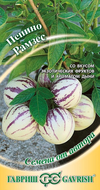 Многолетняя редкая овощная культура для защищенного грунта. Стебли зеленые с фиолетовыми пятнышками, довольно тонкие, гибкие, длиной до 2 м. Листья простые, ланцетовидные, светло-зеленые, с сильным опушением. Плод яйцевидной формы, нежно-кремового или лимонно-желтого цвета, с сиреневыми полосками, массой до 1300 г. Мякоть сочная, кисло-сладкая, медово-желтого цвета со вкусом экзотических фруктов и ароматом дыни. Содержит ретинол (витамин А) и аскорбиновую кислоту (витамин С), которой не меньше, чем в цитрусовых. Плоды используют в свежем виде или для приготовления варенья. Семена проращивают при температуре 28-30°С на влажной поверхности в прозрачной емкости с крышкой, желательно с дополнительной подсветкой. Оптимальный срок посева — конец ноября — начало декабря, высадка в теплицы — как можно раньше, при условии защиты от заморозков (оптимально — с конца февраля до начала мая, поскольку с середины мая до середины августа плоды почти не завязываются из-за длинного светового дня). Растения формируют в 1-2 стебля, агротехника выращивания рассады приближена к баклажану, а после высадки на постоянное место — к томату. В конце лета, пепино пересаживают в горшок и переносят в теплое светлое место.