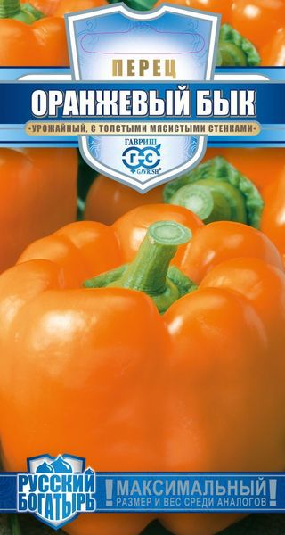 Высокоурожайный ранний (100-110 дней от всходов до начала плодоношения) сорт для выращивания под временными пленочными укрытиями и в открытом грунте. Формирует куст высотой 80-110 см. Плоды крупные, массой 250 г (отдельные до 300-400 г), кубовидные, в технической спелости зеленые, в биологической спелости ярко-оранжевые, с толстыми мясистыми стенками до 10 мм. Сорт устойчив к вирусу табачной мозаики. Товарная урожайность — 7,0-14,0 кг/м? (в зависимости от условий выращивания. Рекомендуется для употребления в свежем виде, фарширования, замораживания и консервирования. Выращивают рассадным способом. Рассаду пикируют в фазе 1-2 настоящих листьев. После высадки в теплицу у растений удаляют боковые побеги и листья до первой развилки и подвязывают к опоре.