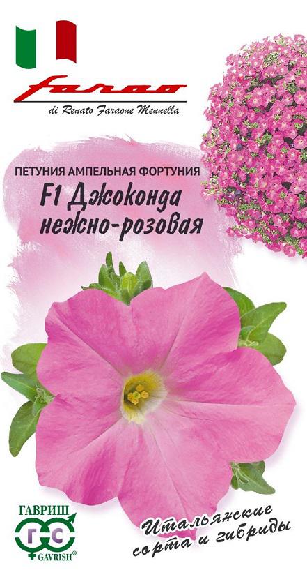 Уникальные гибриды итальянской серии «Джоконда» формируют поразительно мощный каскад из зелени и огромного количества цветов. Они превосходят все известные каскадные формы по многим параметрам, включая «сурфинию». Одно растение обладает такой скоростью и силой роста, что быстро заполнит пространство диаметром 1 м. Цветение настолько обильное, что практически не видно зелени и количество цветков не меняется с начала цветения до заморозков. Габитус растения зависит от плотности посадки. При высадке на расстоянии 30 см, растут, в основном, вверх, образуя «подушку» из нежно-розовых цветков высотой 20 см. Крепкие стебли позволяют поддерживать форму в течение всего сезона. Высаженные на расстоянии 60 см, разрастается как почвопокровные во всех направлениях на площади 1 м?. Но эффектнее всего выглядят растения в подвесных корзинах и балконных ящиках, где мощные многочисленные побеги длиной 80-100 см, свисая, образуют грандиозный цветущий водопад. Выращивают рассадным способом. Посев проводят с января по апрель, поверхностно, под стекло (после появления всходов стекло убирают). В зимние месяцы январь-февраль досветка обязательна. При ранних сроках посева цветение начинается в мае. Без дополнительного освещения петунию высевают не раньше марта. Всходы появляются через 7-12 дней. На постоянное место высаживают, когда минует опасность заморозков. Светолюбива и достаточно засухоустойчива. Предпочитает легкие, плодородные, хорошо дренированные почвы.