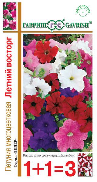 Привлекательная смесь сортов высотой 30-50 см. Многочисленные цветки разнообразной окраски до 6,5 см в диаметре с гладким краем лепестков. Выращивают рассадным способом. Посев проводят поверхностно, под стекло (после появления всходов стекло убирают). В зимние месяцы (январь-февраль) досветка обязательна. Без дополнительного освещения петунию высевают не раньше марта. Всходы появляются через 7-12 дней. На постоянное место высаживают, когда минует опасность заморозков. Петуния используется как фоновое и балконное растение, в контейнерах, вазах, для украшения подоконников, для посадки в рабатки, бордюры. Цветет обильно с начала мая до заморозков.