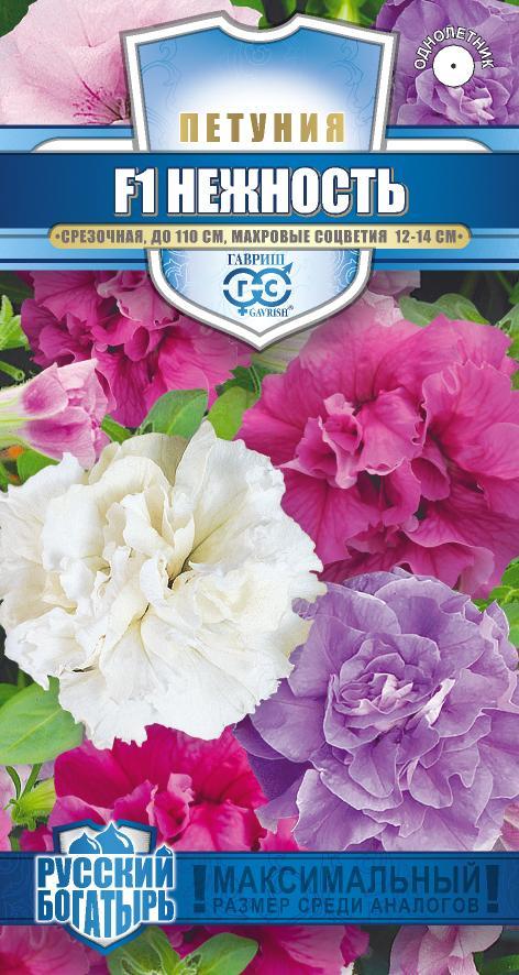 Необыкновенная смесь махровых крупноцветковых петуний. Соцветия лососевых, розовых, фиолетовых, белых и двуцветных окрасок в диаметре 12-14 см расположены на прямостоячем ветвистом стебле высотой 100-110 см. Цветет обильно с начала июня до заморозков. Выращивают рассадным способом. Семена высевают с января по апрель, поверхностно, не заделывая под стекло (после появления всходов стекло убирают). В зимние месяцы (январь-февраль) досветка обязательна. При ранних сроках посева цветение начинается в мае. Без дополнительного освещения петунию высевают не раньше марта. Всходы появляются через 7-12 дней. На постоянное место высаживают, когда минует опасность заморозков. Светолюбива и достаточно засухоустойчива. Предпочитает легкие, плодородные, хорошо дренированные почвы. Петунии можно выращивать в течение нескольких лет, сохраняя зимой в освещенном помещении (растение сильно обрезают, t не более 12°С, умеренный полив). Прекрасно смотрится в рабатках, миксбордерах, для срезки. При использовании для срезки главный стебель не прищипывают. Устойчива к неблагоприятным условиям.