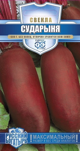 Среднеспелый (110-115 дней от всходов до технической спелости) сорт с высоким урожаем гигантских цилиндрических корнеплодов. Розетка листьев полупрямостоячая. Корнеплоды одинаковые, ровные, с тонкой кожицей, диаметром 5-8 см, массой 400-600 г, с бордовой нежной мякотью без колец. Легко выдергиваются, хорошо хранятся, сохраняя вкус и привлекательный внешний вид. Сорт устойчив к цветушности. Семена высевают в рядки с междурядьями 30 см в конце апреля — начале мая на глубину 2-4 см. Всходы прореживают, оставляя между растениями 6-10 см. Для получения крупных корнеплодов необходимо подкармливать растения каждый месяц раствором коровяка, аккуратно рыхлить междурядья, по мере необходимости поливать.