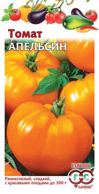 Раннеспелый (98-110 дней) высокорослый сорт для открытого грунта и пленочных укрытий. Плод округлый, гладкий, крупный, массой 180-300 г, мясистый, сладкий, с малым количеством семян, по цвету и форме напоминает апельсин. Ценность сорта: стабильная урожайность, выравненность плодов, высокие вкусовые и товарные качества. Рекомендуется для потребления в свежем виде, приготовления салатов и консервирования. Посев на рассаду — в конце февраля – начале марта. Пикировка — в фазе первого настоящего листа. Высадка рассады в теплицы — в конце апреля — начале мая. Обязательна подвязка растений через несколько дней после высадки. Формируют в один стебель, удаляя все «пасынки» и нижние листья, а также прищипывают точку роста в конце вегетации. Схема посадки: 40х60 см.